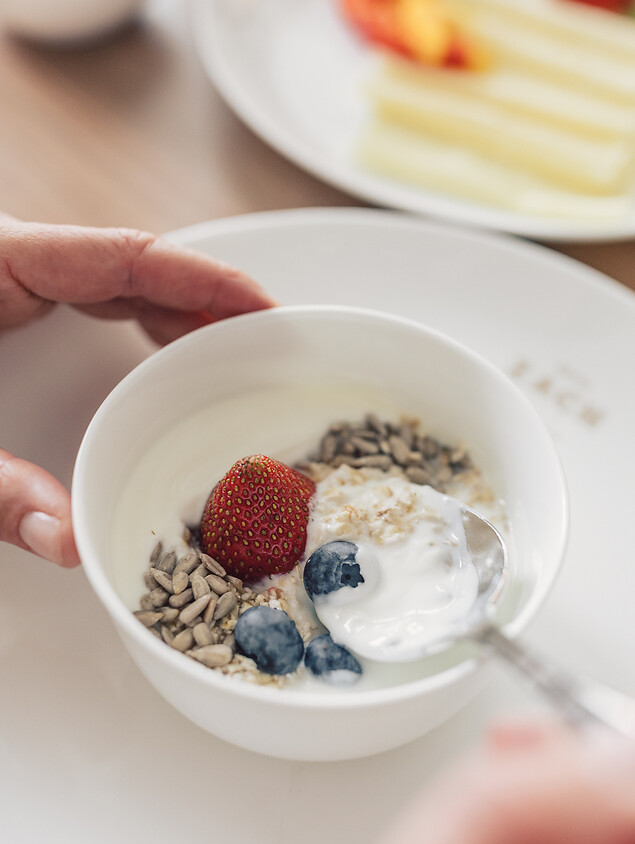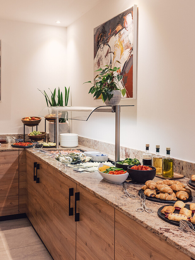 The most important and beautiful meal of the day at our bed and breakfast in Innsbruck consists of various types of bread, baked goods and cakes, spreads, jams and honey, regional sausage and cheese varieties, Tyrolean bacon, muesli, fresh fruit and vegetables as well as, on request, Ham & Eggs, vegan, gluten and lactose-free products. And to accompany this? Lavazza coffee specialties, a wide range of teas and other hot and cold drinks of your choice.