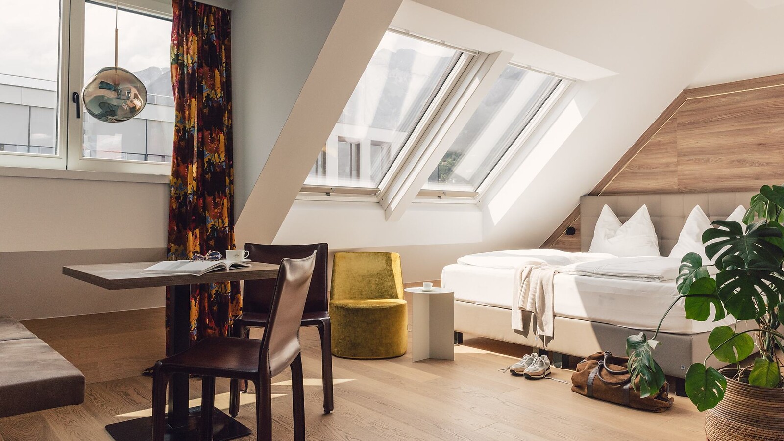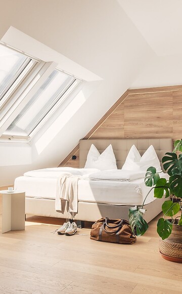 Whether alone or as a couple, in our Panorama Apartment you can enjoy your stay to the fullest. On 30 square meter you will find a kitchenette as well as a comfortable double bed with a roof window view. Start the day with a view of the mountains!