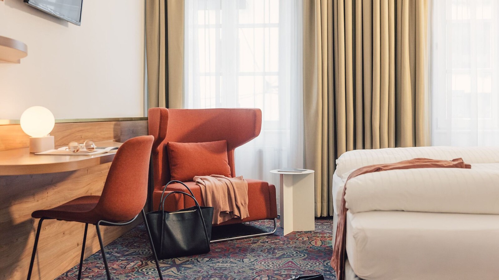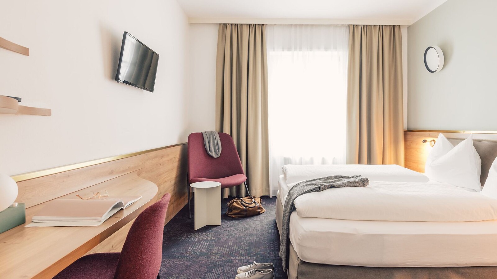 Make yourself comfortable in the cosy lounge corner or use the desk to deal with your documents. The modern bathroom and sound-insulated windows complete the feel-good atmosphere.